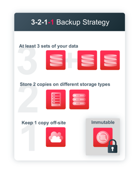 Important reminder: Immutable and indelible storage helps ensure that your data cannot be changed, encrypted or deleted for a determined length of time, or at all. At first, make immutable storage your second copy, but once you get comfortable with your retention policies, make it your primary copy.