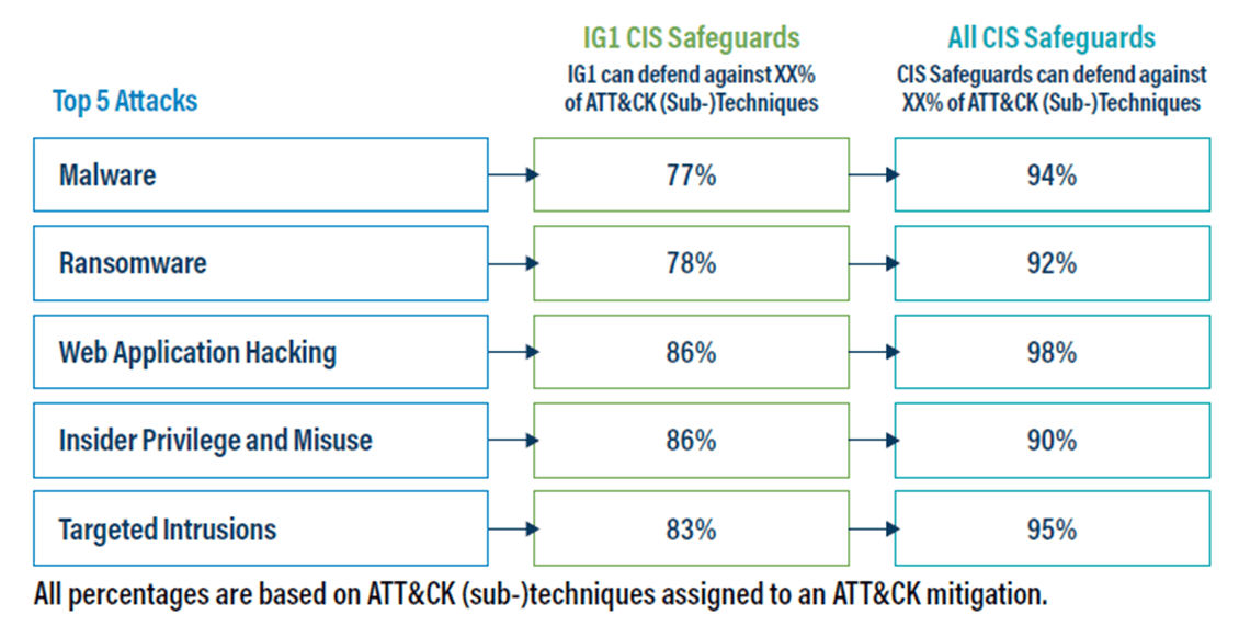 - Identification of the security value, the benefit of implementing a CIS Safeguard to defend against an individual attack or a group of attacks.