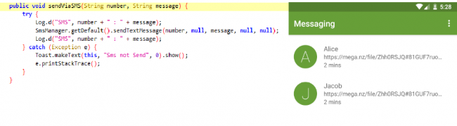 sendO2ViaSMS function return a decoded bas64 hash that decodes to “hxxps://mega[.]nz/file/Zhh0RSJQ#81GUF7ruoEv9itdyh_kswLlBYWoAe0TwMLt4MTM9V4g”