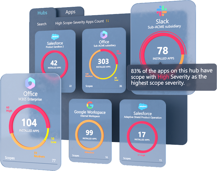 In March 2023, Adaptive Shield released a report showing that organizations using Google Workplace with 10,000-20,000 users averaged 13,913 third-party apps connected to Google Workplace alone. An astonishing 89% of these requested either high- or medium-risk permissions. Many of these high-risk apps are used once and forgotten about, or used by a small number of employees. However, even these dormant or lightly used applications have significant permissions and can be used to compromise or breach a SaaS application.