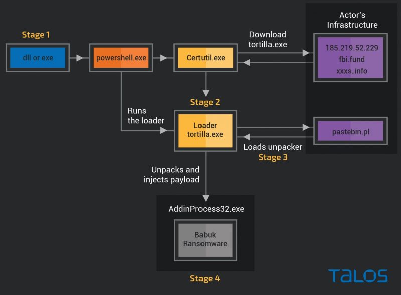 In July, Babuk gang’s source code and builder were spilled: They were uploaded to VirusTotal, making it available to all security vendors and competitors. That leak has helped the ransomware spread to even an inexperienced, green group like Tortilla, Cisco Talos said.