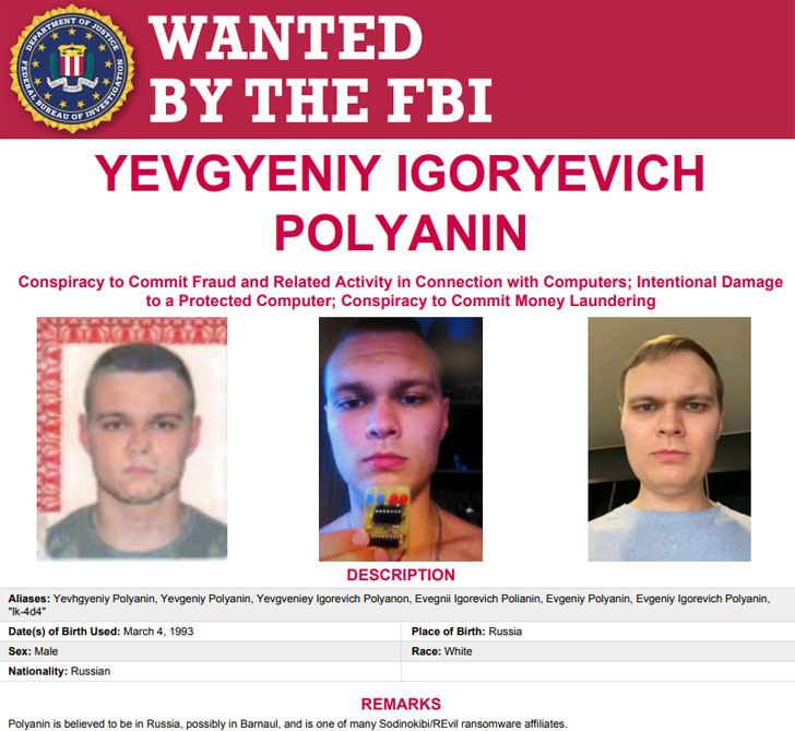 In another major development, the Justice Department disclosed the seizure of $6.1 million in alleged ransomware payments received by Russian national Yevgeniy Polyanin, who is currently at large and has been accused of conducting REvil ransomware attacks against multiple businesses and government entities in Texas dating back to August 16, 2019.