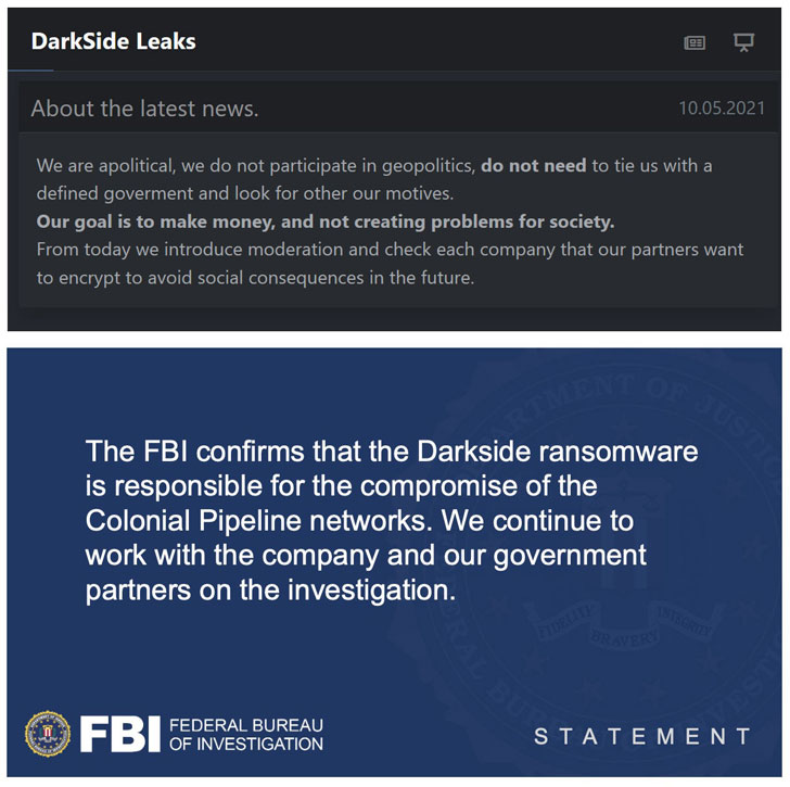 While the U.S. government on Monday said there was no evidence to imply that Russia was involved in the Colonial Pipeline ransomware attack, the operators of the DarkSide ransomware issued a statement on their dark web extortion site, pledging it intends to vet the companies its affiliates are targeting going forward to “avoid social consequences in the future.”