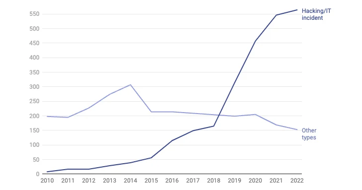 The severity of this issue is further illustrated by a more than threefold increase in reported “hacking or IT incidents” to the US Department of Health & Human Services (HSS) from 2018 to 2022.