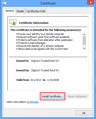 - Click here to download the latest trusted root certificate authority (DigiCert Trusted Root G4)