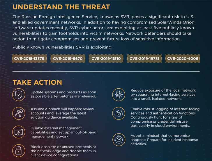 Furthermore, the National Security Agency (NSA), the Cybersecurity and Infrastructure Security Agency (CISA), and the Federal Bureau of Investigation (FBI) have jointly released an advisory, warning businesses of active exploitation of five publicly known vulnerabilities by APT29 to gain initial footholds into victim devices and networks —