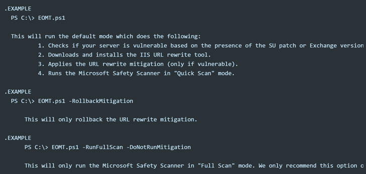 Called Exchange On-premises Mitigation Tool (EOMT), the PowerShell-based script serves to mitigate against current known attacks using CVE-2021-26855, scan the Exchange Server using the Microsoft Safety Scanner for any deployed web shells, and attempt to remediate the detected compromises.