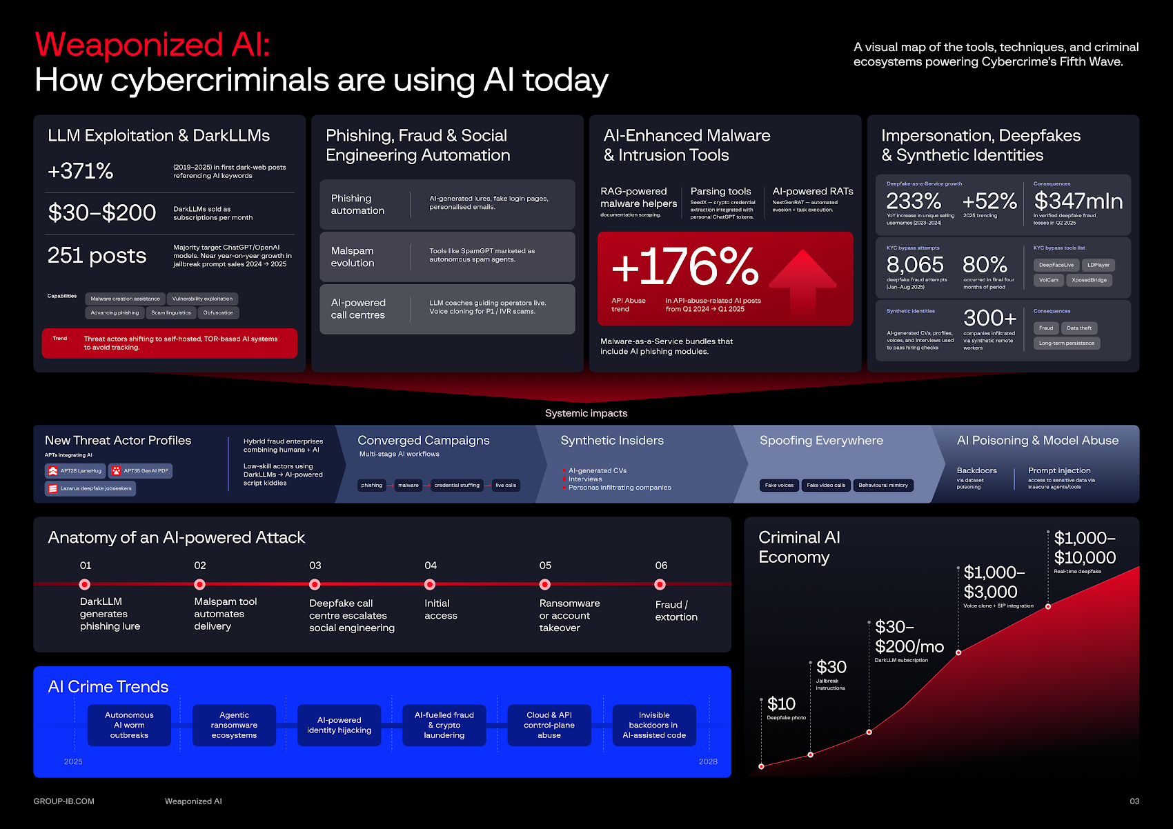 In a whitepaper published this week, Group-IB described AI as supercharging a “fifth wave” in the evolution of cybercrime, offering ready-made tools to enable sophisticated attacks. “Adversaries are industrialising AI, turning once specialist skills such as persuasion, impersonation, and malware development into on-demand services available to anyone with a credit card,” it said.