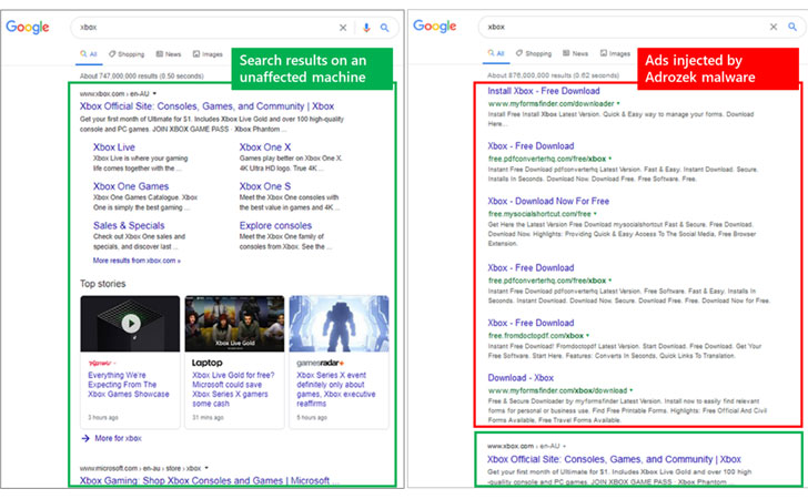 Microsoft on Thursday took the wraps off an ongoing campaign impacting popular web browsers that stealthily injects malware-infested ads into search results to earn money via affiliate advertising.