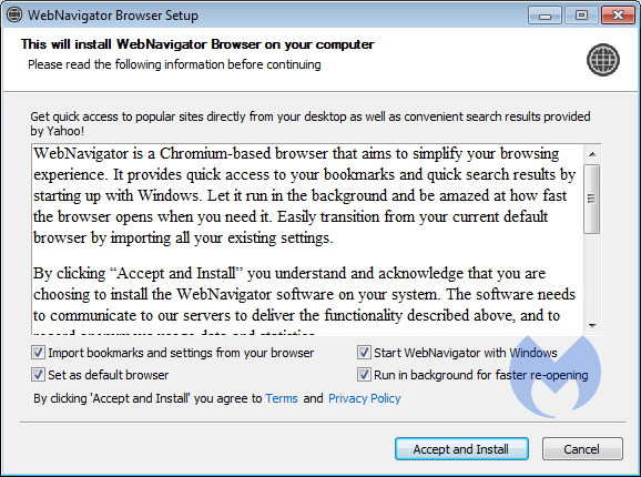 The installation dialog box for WebNavigator. (Source: Malwarebytes)