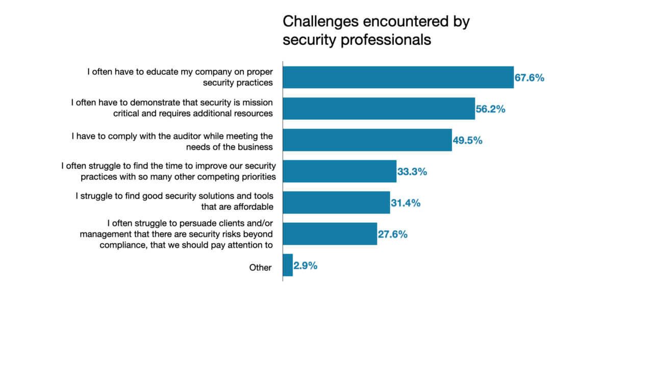 Some security professionals also mentioned struggling to keep up with security improvements due to having so many responsibilities.