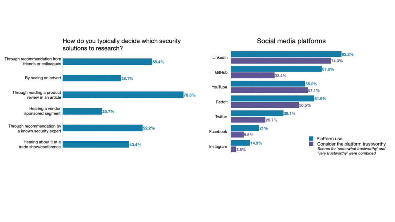 LinkedIn was the most used and trusted social media platform, while many respondents mentioned Gartner as the first step in researching what security solutions they should be thinking about.