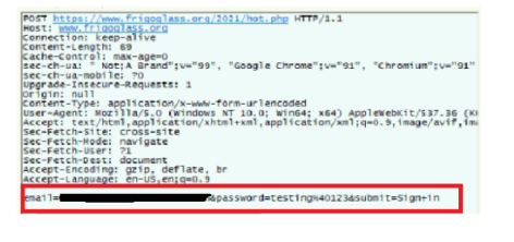 Generally, when a password is provided, it will not throw an error for the first time. Instead, it accepts the entered password. After clicking on the sign-in option, it again redirects to the legitimate page, but in the background, captured traffic is shown below where targeted email ID and entered password is sent in POST request to phishing URL. As a result, the victim has no idea that they entered their password on a fake site. In this way, attackers harvest credentials.