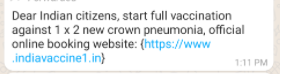 Example 1 – In the below example, the attacker tries to steal personal information by using the Covid Vaccination registration. The portal asks to deposit money in advance for vaccination, promising a refund after it gets done, thus creating havoc due to shortage.