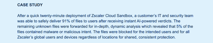 Supplementing your detection technologies with Zscaler’s cloud native inline sandbox gives you:
