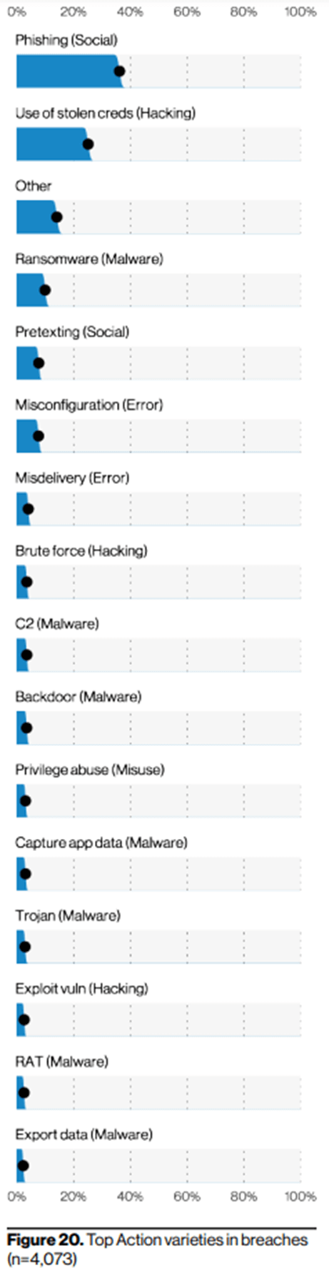 At the same time, credential compromise remains a significant part of the threat landscape. The Verizon Data Breach Investigations report for 2021 puts “use of stolen creds” as the second action variety in breaches, just below phishing (which is an often-used method to steal credentials). For attackers, it’s easier and less likely to be detected if they’re accessing systems with valid credentials.